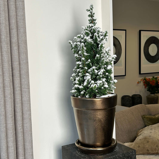 Aardewerken Pot met Vaste Schotel – Goudbruin Metallic – in 2 Maten
