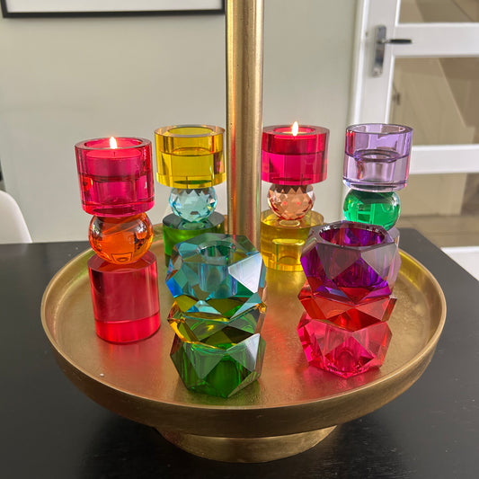 Glazen kandelaars passen helemaal bij de trends van nu. Steeds vaker zien we dat de kandelaren worden gecombineerd. Verschillende varianten, groottes en soorten om een speels effect te creëren. Ook met kaarsen kun je een kleurrijk geheel maken. Ons aanbod aan kaarsen ontdek je hier!