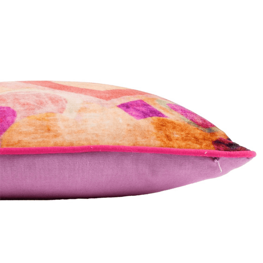 Sierkussen Triangles – Velvet Fluweel – Roze/Oranje – 45x45 cm – Met Vulling