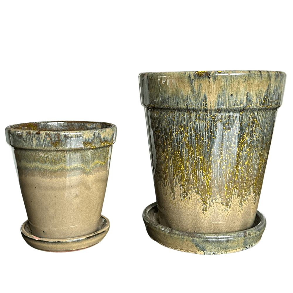 Deze handgemaakte keramische bloempotten zijn echte sfeermakers dankzij hun natuurlijke kleuren en unieke afwerking. Elke pot is volledig geglazuurd in een mix van zand- en groentinten, met een glanzend, druipend effect dat elke pot een eigen karakter geeft. Geen twee zijn hetzelfde – perfect voor wie houdt van een persoonlijke touch.