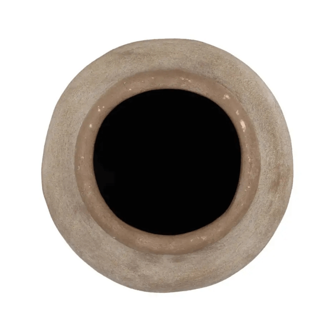 De natuurlijke tinten en het aardewerk geven deze pot een tijdloos karakter. Hij staat mooi op de vloer, op een lage kast of in een open ruimte waar hij echt tot zijn recht mag komen.