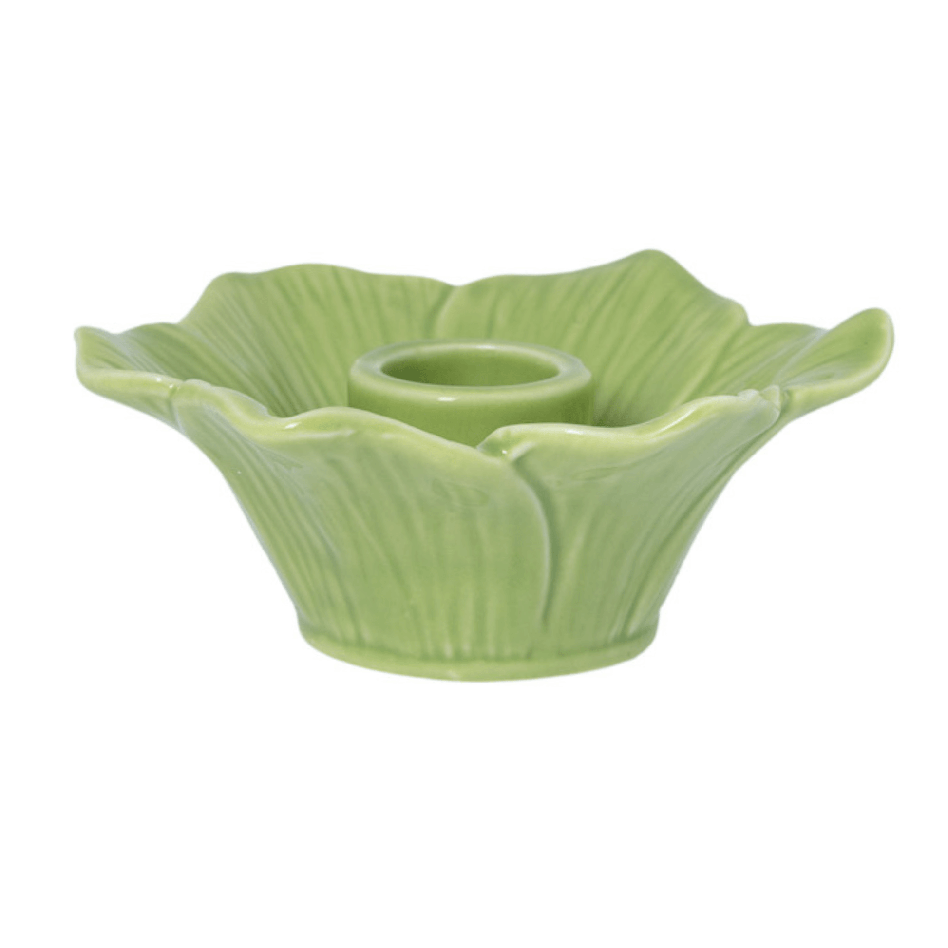 Deze prachtige keramieken kandelaar is geïnspireerd op de vorm van een bloem. De zachte, golvende lijnen geven hem een frisse en speelse uitstraling, perfect voor het voorjaar en de zomer.
