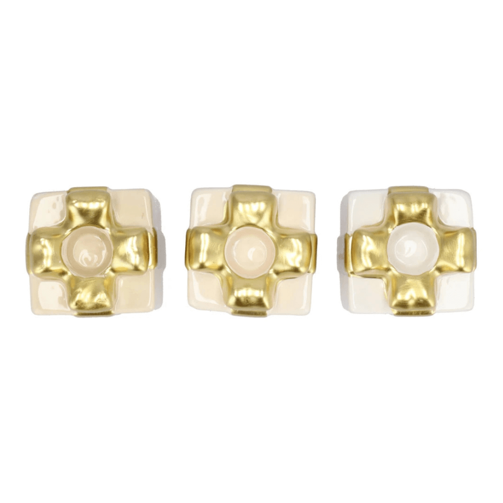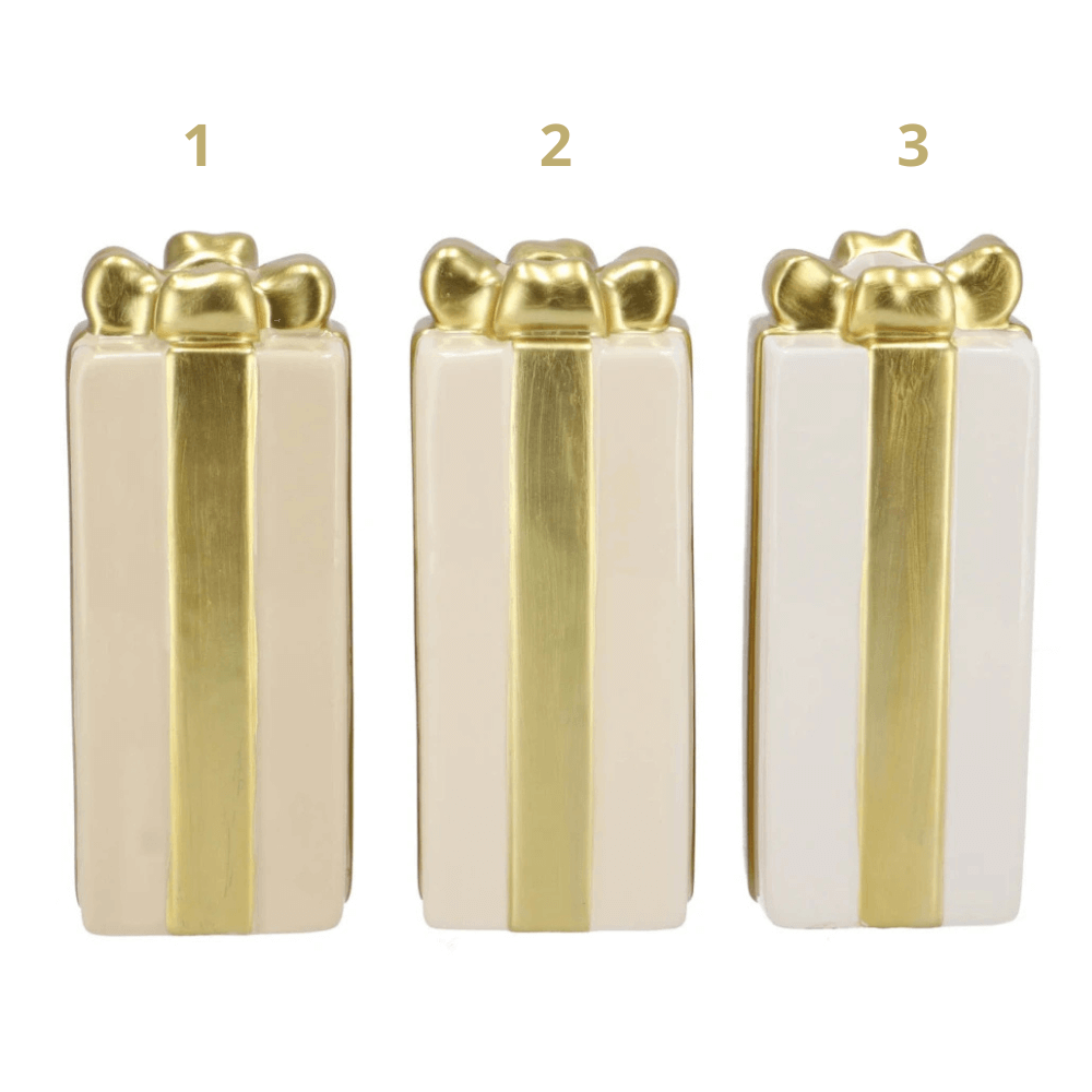Deze cadeau kandelaars zorgen voor een feestelijke en gezellige sfeer in huis. Ze zijn gemaakt van keramiek en hebben een mooie afwerking in wit met goud, waardoor ze stijlvol en vrolijk tegelijk zijn.