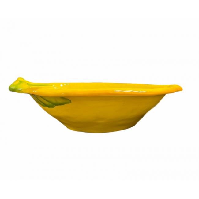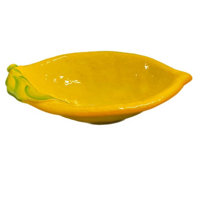 Deze prachtige citroenschaal brengt direct een zonnige, mediterrane sfeer in huis. De schaal is volledig handgemaakt en handgeschilderd in Italië, waardoor elk exemplaar uniek is en een ambachtelijke uitstraling heeft. De frisse citroenvorm en de warme gele kleur maken het een echte eyecatcher op tafel.