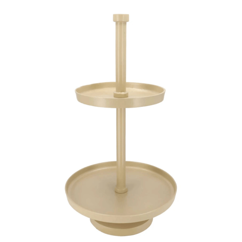 Deze zand kleurig  étagère met twee lagen is een echte sfeermaker in huis. Perfect om kaarsen, kandelaars, kleine vaasjes of seizoensdecoratie een mooie plek te geven. Door het hoogteverschil van de twee lagen ontstaat een speels effect, waardoor je accessoires nog beter opvallen.