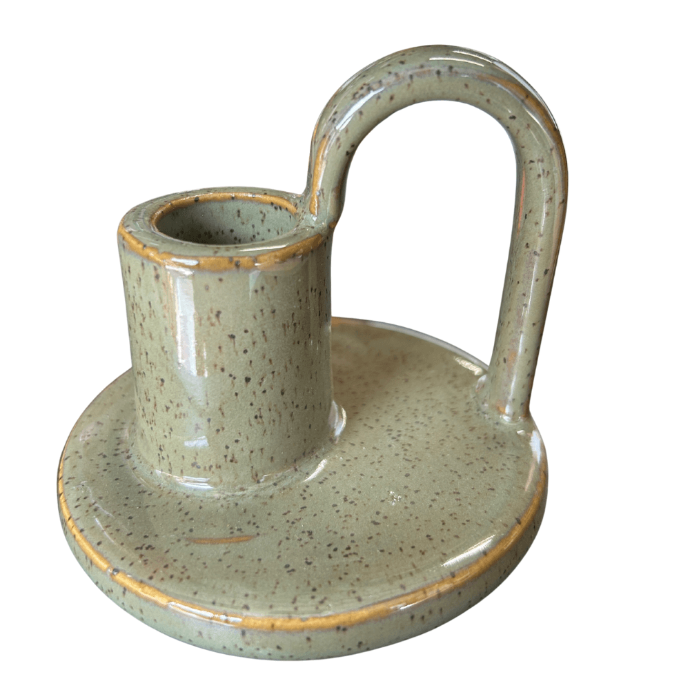 Kaarsen maken je huis meteen gezellig, en met deze kandelaar zet je ze nog mooier neer. Deze kandelaar is gemaakt van stevig aardewerk en uitgevoerd in een zachte groen/grijze kleur die goed past in elk interieur.