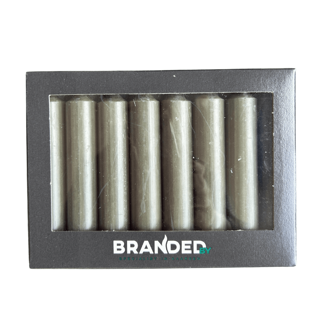 Met deze korte olijf kleurige dinerkaarsen van Branded by breng je eenvoudig sfeer in huis. De kaarsen hebben een mooie kleur en passen perfect in al onze kandelaars dankzij hun doorsnede van 2,1 cm.