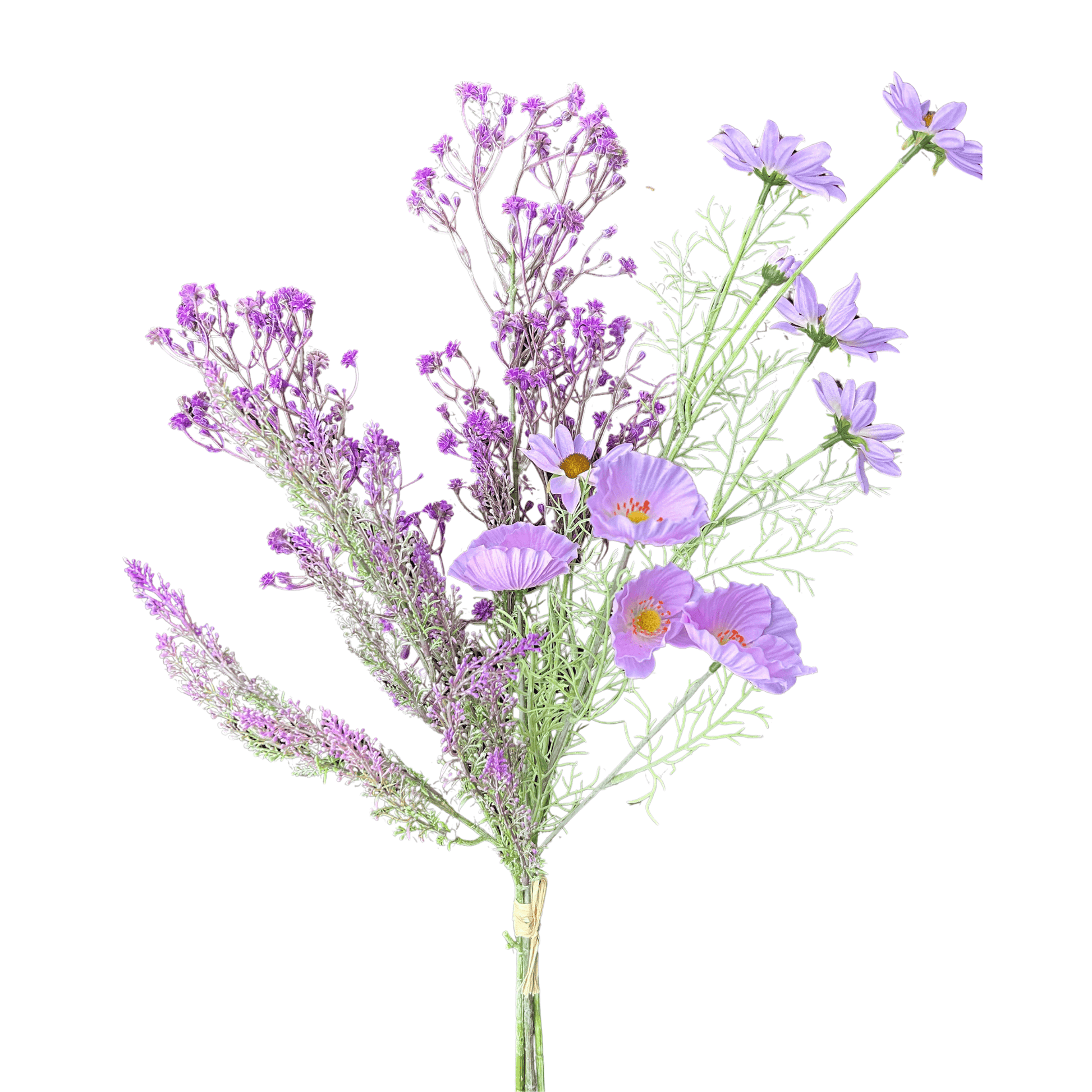 Breng kleur en een speelse, natuurlijke uitstraling in huis met dit prachtige kunst veldboeket in paarse tinten. Het boeket bestaat uit een mix van verschillende bloemen en fijne takjes, waardoor het de uitstraling heeft van een vers geplukt veldboeket. Met een totale hoogte van 78 cm is dit boeket perfect voor een mooie vaas.