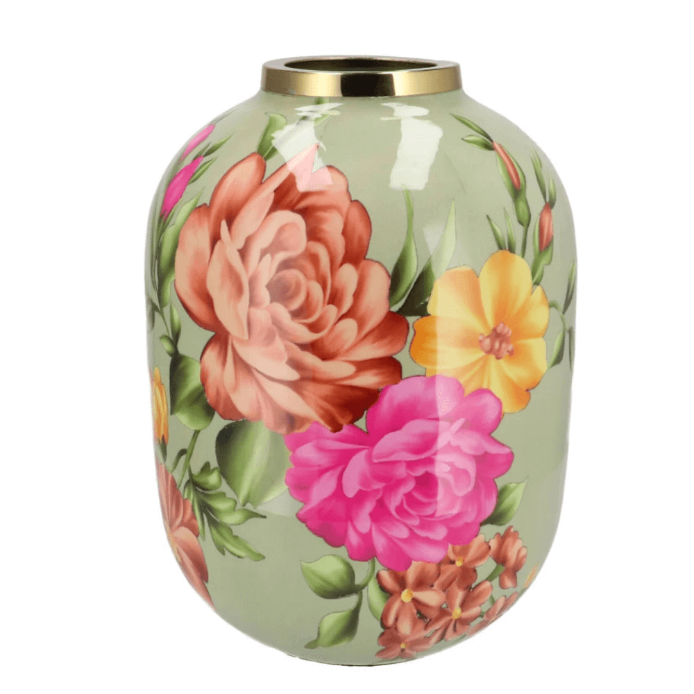 Deze decoratieve grote vaas van 36 cm hoog brengt kleur en sfeer in huis. Het vrolijke bloemenpatroon geeft een Vintage uitstraling wat echt een trend is op dit moment. De smalle hals houdt bloemen mooi bij elkaar, waardoor je boeket goed tot zijn recht komt.