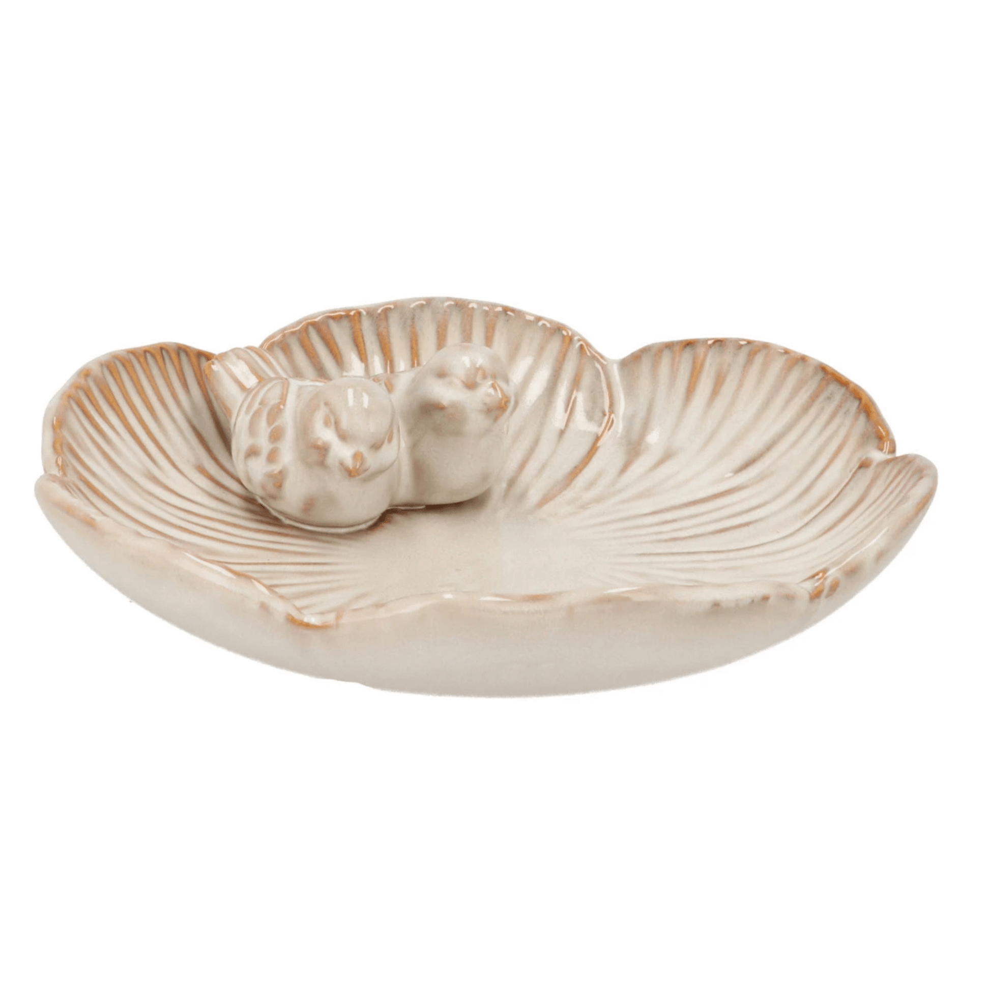 Deze prachtige vogelwaterbak van geglazuurd aardewerk is een sfeervol detail voor je tuin, balkon of terras. De zachte vorm van de schaal en de twee schattige vogeltjes geven het geheel een leuke uitstraling.